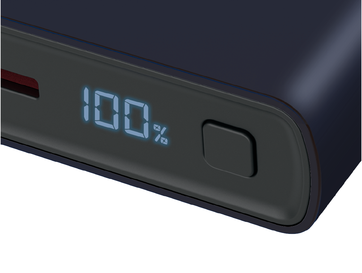 Pantalla LED indica batería restante. Color Pantone Océano.